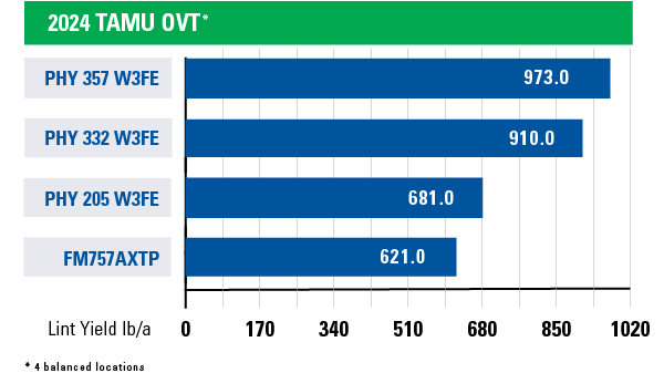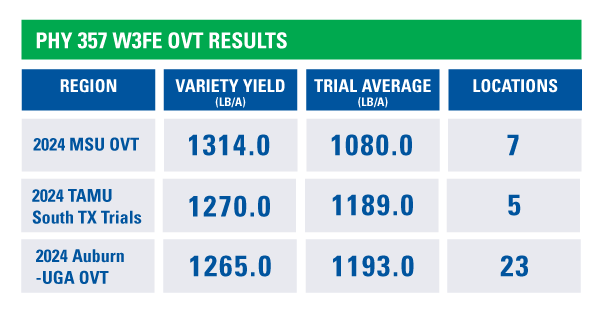 EXPLORE TRAITSPhytoGen brand PHY 357 W3FE is a broadly adaptable variety with exceptional yield and excellent fiber quality potential. This Upland variety features the Enlist® cotton trait to enable flexible, effective weed control with the Enlist® weed control system, the WideStrike® 3 insect protection trait, bacterial blight and stacked root-knot and reniform nematode resistance for season-long protection.
